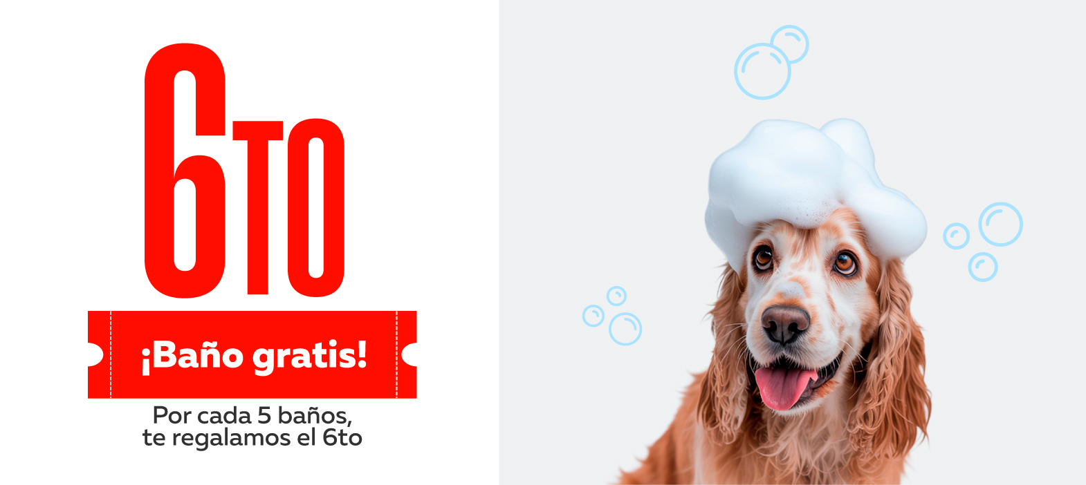 ¡6to baño gratis! 🛁 Por realizar 5 baños, recibe 1 baño GRATIS para tu mascota (Desafío “¡6to baño gratis!”).
