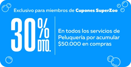 Promoción válida del 02-02-2026 hasta el 01-03-2026.. Se podrá usar un Cupón de $(monto canjeado) por baño cosmético para perro (tamaño canjeado) para utilizar en nuestras tiendas Superzoo con peluquería. El servicio incluye baño con shampoo específico/neutro y agua temperada, secado, cepillado, corte de uñas, limpieza de oídos y perfume. Los cupones serán de un solo uso, después de aplicar el descuento el código se elimina automáticamente. No acumulable con otras promociones y ofertas. Ver más información en www.superzoo.cl/peluqueria.html