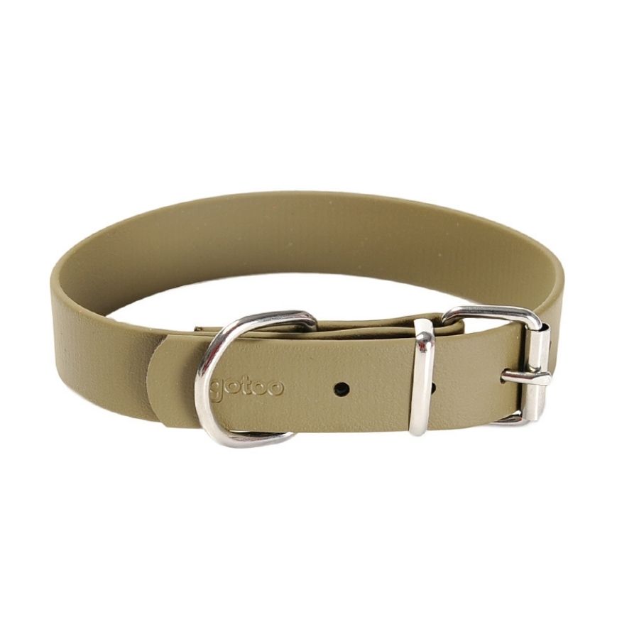 - Acerca del producto: <p style="text-align: justify;">El <strong>collar beige</strong> <strong>Biothane para perros </strong>de la línea <strong>Deluxe de Gotoo</strong> ofrece un aire de <strong>elegancia </strong>discreta para aquellos que prefieren un<strong> tono neutro</strong> en los <strong>accesorios </strong>de sus <strong>mascotas</strong>. Confeccionado en <strong>piel vegana 100%</strong>, proporciona no solo una apariencia sofisticada sino también <strong>comodidad </strong>y <strong>ética</strong>. Su <strong>tono beige</strong> es versátil, adaptándose a cualquier <strong>ocasión</strong> y <strong>clima</strong>, gracias también a su característica <strong>waterproof</strong>, que lo mantiene resistente en ambientes húmedos.</p> <p style="text-align: justify;">Con una hebilla y anilla de hierro cromado, este <strong>collar de piel </strong>ofrece una <strong>sujeción</strong> <strong>segura </strong>para paseos confiables. Es importante ajustar correctamente el<strong> collar beige</strong>, permitiendo el espacio adecuado para dos dedos entre el collar y el cuello del <strong>perro</strong>, para asegurar su comodidad. Para preservar su aspecto lujoso, se recomienda lavarlo a mano. Este <strong>accesorio de paseo</strong> es solo para el uso con mascotas y debe retirarse si se observa algún daño para mantener la seguridad.</p><br><script> let carouselInner = document.querySelector('.carousel-inner'); carouselInner.insertAdjacentHTML('beforeend', '<img src="https://www.superzoo.cl/on/demandware.static/-/Sites-SuperZoo-master-catalog/default/dw4655da0d/logo/logo-gotoo.webp" class="floating-brand" style="position:absolute;z-index:998;width:15%;height:auto;bottom:10px;right:10px;">'); </script>